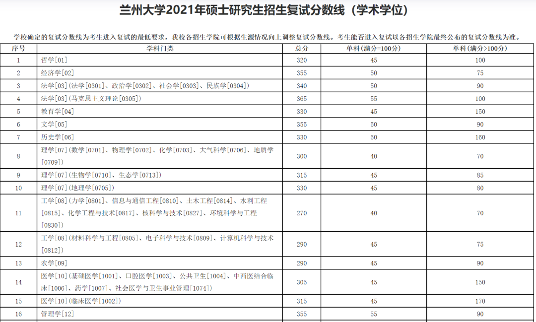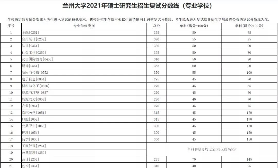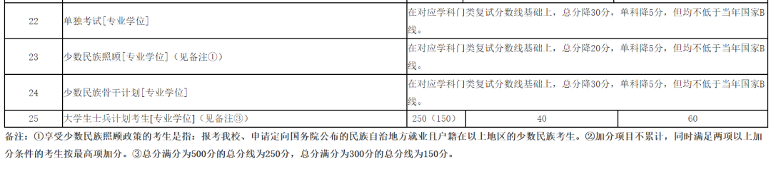 招生专业及复试线:
